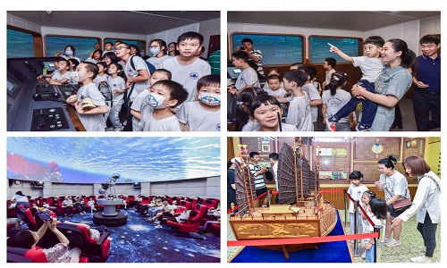 第二部分,参观博物馆和实验室。在老师和家长们的陪同下,小朋友们先后来到学院六自由度航海模拟器、航海博物馆、天象馆四楼天象厅进行参观,实地接触家长们工作的环境,涉猎小众的航海领域知识,处处充满了好奇,感受到家长们工作的了不起。他们通过各种古船模型了解生动的船舶发展史,体验海上驾船迎风斗浪的乐趣,感知浩渺星空、广袤宇宙的神秘……一张张天真无邪的笑脸,一双双充满求知欲的眼睛,一声声充满惊喜的赞叹,洒遍了实验室和校园沿途的角落,感染了平时辛勤工作、疏于陪伴孩子的家长们。