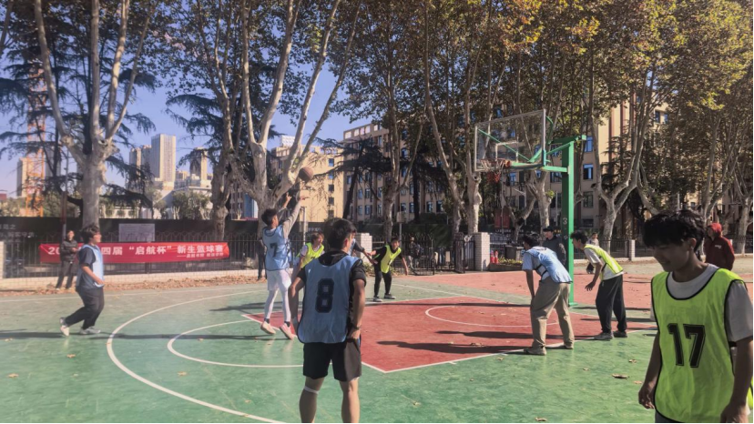 赛场上气氛热烈,球员们精神抖擞、斗志昂扬,在赛场上展开高强度角逐。进攻时,他们精准传球、巧妙跑位,凭借默契配合创造得分良机,一次次精彩投篮博得全场欢呼;防守时,他们严密布防、积极拼抢,用巧妙布阵筑起坚固防线。赛场边,观赛师生的热情将氛围不断推向高潮。各班啦啦队的加油声、欢呼声此起彼伏,凝聚了集体荣誉感;老师们也积极参与,为每一位拼搏的队员加油鼓劲。