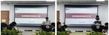 理论学习结束后,秦瑞朋向全体党员介绍了即将转正的2名预备党员的预备情况。随后,两名待转正的预备党员依次进行转正汇报并表明转正的决心,预备党员发言完毕后,支部拥有表决权的党员对预备党员的转正逐一举手表决,一致同意潘家权、程钰洪两名预备党员转为中共正式党员。转正结束后,全体党员重温入党誓词。