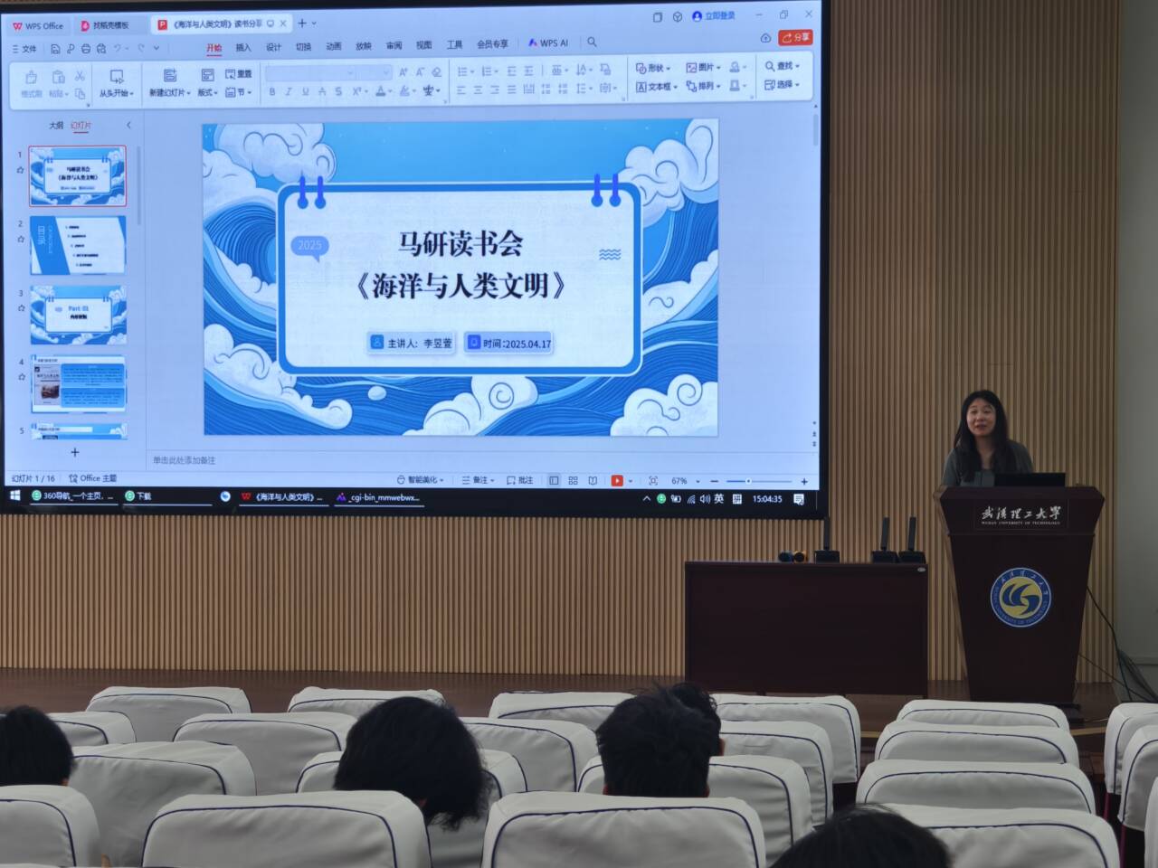4月17日,澳门赌场排名 、交通物流学院、船海能动学院与余家头图书馆在图书馆七楼报告厅联合举办"中国海洋文化"读书分享会。活动以《海洋与人类文明》为研讨核心,通过多维视角展现海洋文明的独特魅力。