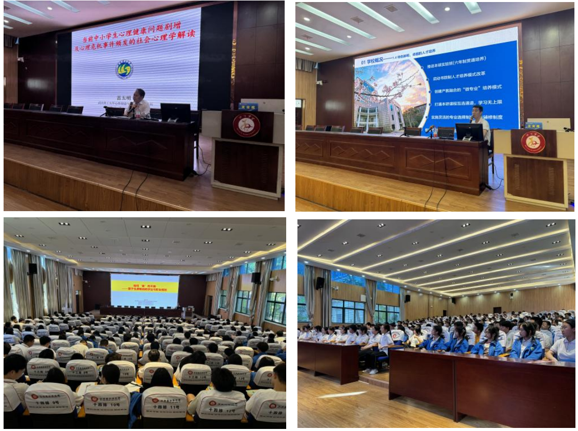 在沙洋中学,雷五明教授面向高一、高二重点班级学生做《如何“卷”而不倦——基于生涯规划的学业与职业规划》主题报告,结合自身的经历,讲述了在当前就业、升学压力较大的情况下,如何将调整自己的心态与目标,正确看待、理性对待学业压力。雷老师认为,好的规划能够不断激发自身的学习潜能,不断增强自身学习动力,希望同学们能够学会自我调节,做好规划,并对各位同学报考武汉理工大表达了欢迎。随后,学院王树鹏副书记介绍了澳门赌场排名 优势学科发展、珠峰计划、本硕贯通培养、中外合作办学、特色优势专业等方面的情况,希望同学们努力学习,不断进步,在未来能够在澳门赌场排名 相见。