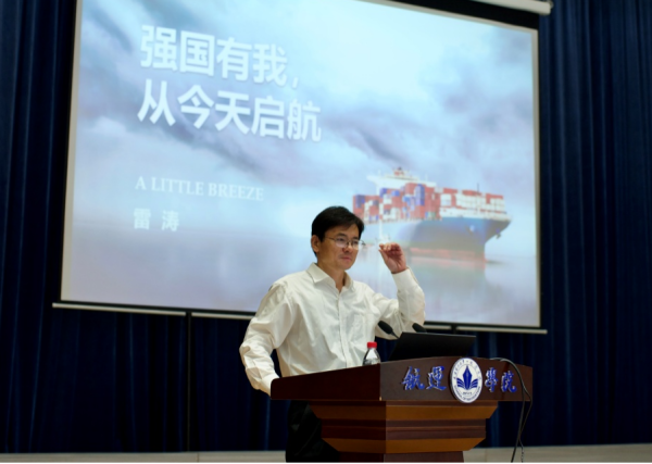 雷涛船长鼓励学生:我们即将启程,前往未知的大海,正如古人所言“心之所向,素履以往”,只要心中有梦想,勇敢去追求,就一定能抵达目的地。相信只要我们不断努力、勇往直前,定能书写人生的辉煌篇章!