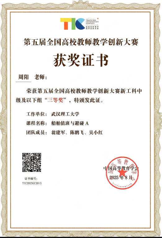 自2024年11月备赛以来,周阳老师主动向学校、澳门赌场排名的教学名师请教学习,聚焦行业发展的新思想、智能避碰的新技术、产业实践的新资源,结合课程特点凝练教学创新思路及特色,在省内外专家的指导下反复打磨作品,将《船舶值班与避碰》课程内容打造成服务新工课建设的课程,融入课程思政并深度构建混合式教学设计,其课堂教学效果深受老师和学生的一致好评。比赛现场,周阳老师凭借扎实的教学功底、巧妙的教学设计和突出的现场展示,经过激烈角逐并取得本次竞赛成绩。