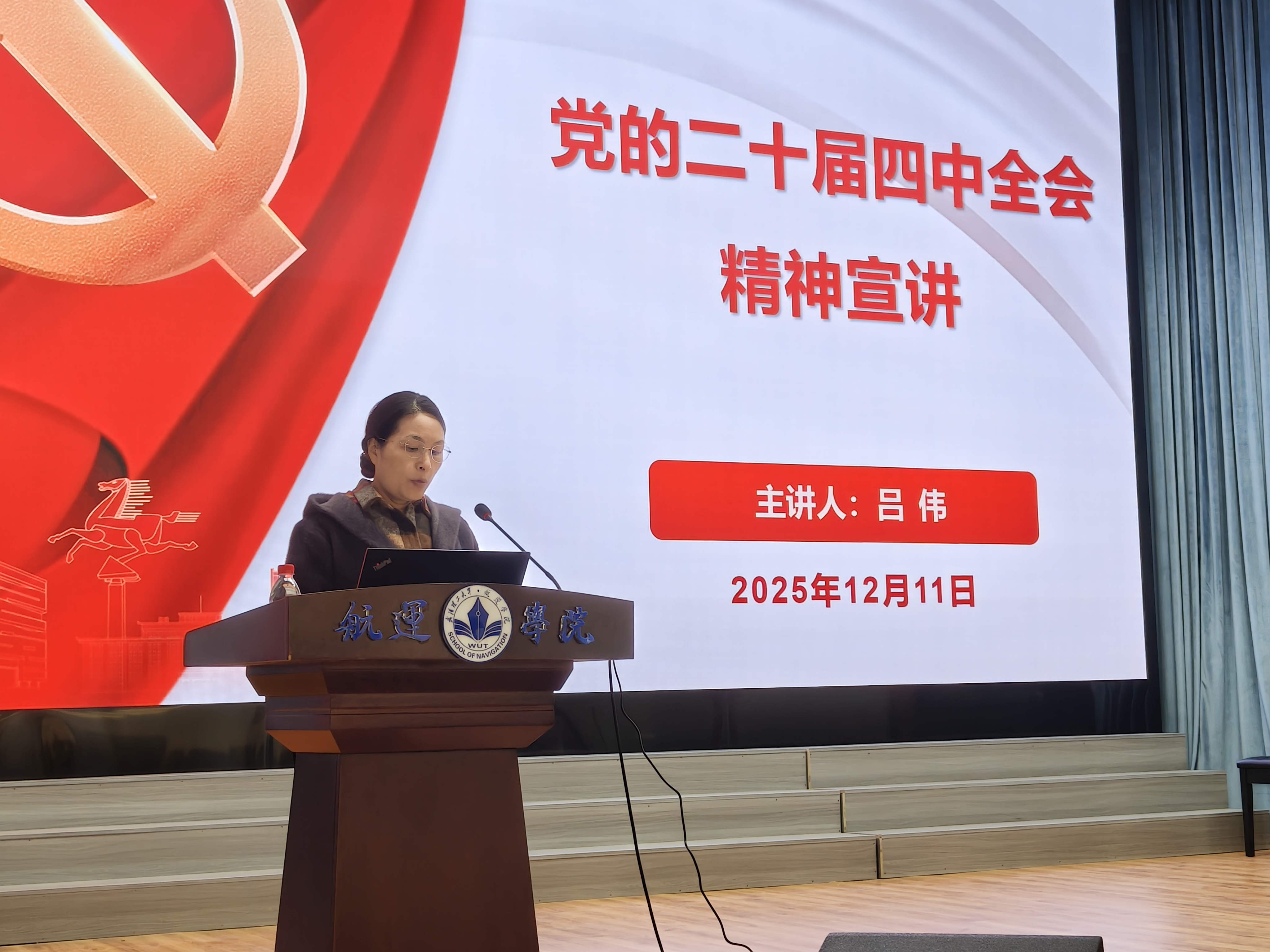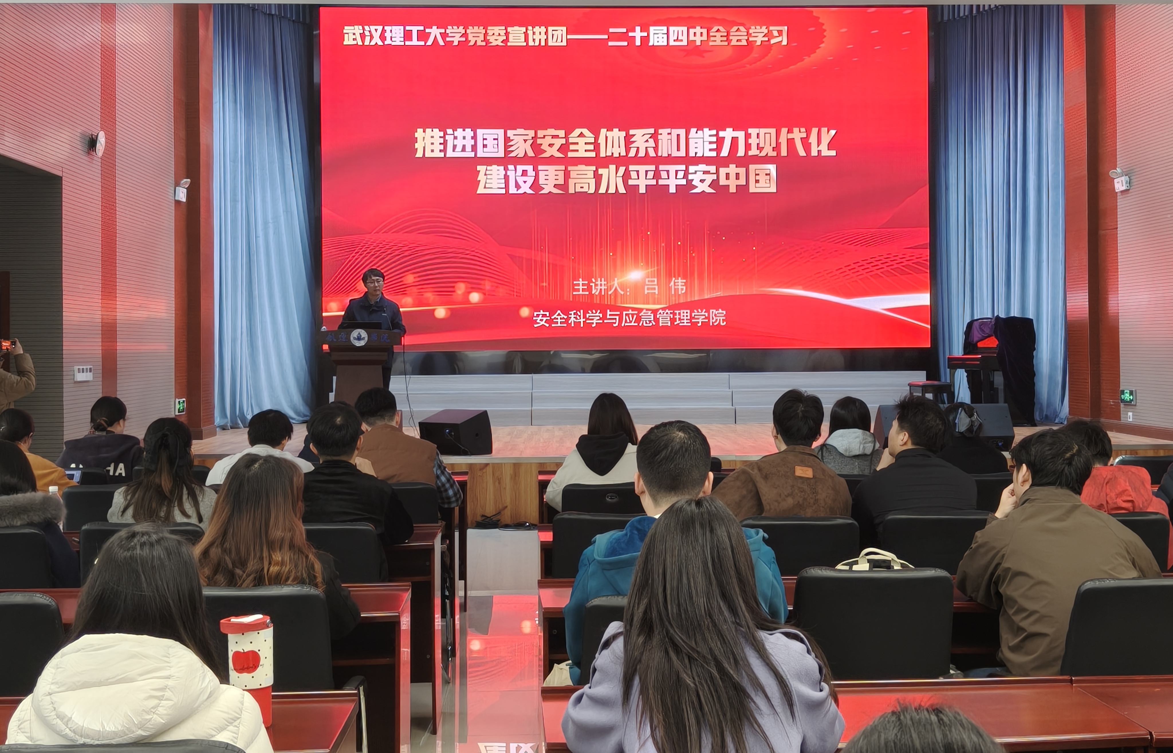 为深入学习宣传贯彻党的二十届四中全会精神,引导全院师生深刻领会全会核心要义与实践要求,12月11日下午,学院党委邀请学校党的二十届四中全会宣讲团成员、安全科学与应急管理学院副院长吕伟,在天象馆一楼会议厅开展专题宣讲。学院党委书记侯俊、副院长游安妮及师生党员代表参会。