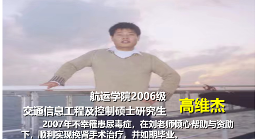 刘敬贤教授将研究生指导工作看作一门艺术,在日常教导中注重严慈相济、立德树人。坚持在学生培养过程中严格要求,在学生生活中时刻给予关爱。研究生高维杰在读期间身患尿毒症,诊断结果需要进行换肾手术,刘敬贤老师即刻将自己准备用于老家装修的4万元钱悉数给他用于治疗,每周定期到医院看望,直至战胜病魔,并在毕业期间积极帮助高维杰同学顺利毕业、按时就业,从根本上解决生活问题,现在已经成为山东交通学院航海专业的骨干教师。